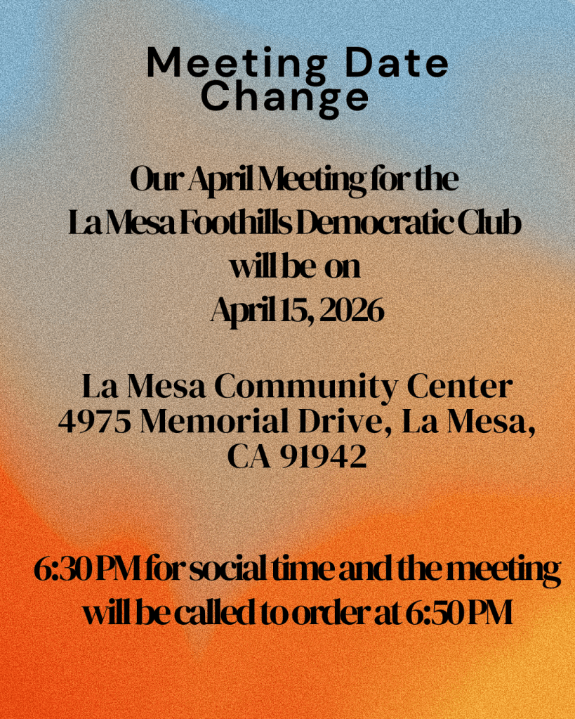 Resolution Passed by the La Mesa Foothills Democratic Club (LMFDC) at its General Membership Meeting February 4, 2026. The LMFDC is a chartered club by the San Diego County Democratic Party. This Resolution is a Club Resolution only, not a County or State Dem Party Resolution.