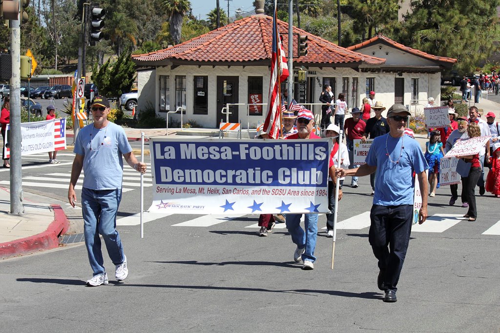 The La Mesa Flag Day Parade is on Saturday, May 31st this year. Each year, our Club has proudly marched in the Parade and the great folks in La Mesa always give us a big cheer! Because of LMFDC, La Mesa is a Democratic city. Plan to join us in 2014, an important election year, and give a boost to our Democratic candidates running in the June 2nd Primary. After the Parade, join us at Swamis Café: 8284 La Mesa Blvd, La Mesa, CA(619) 668-9030. Enjoy these photos from past parades.